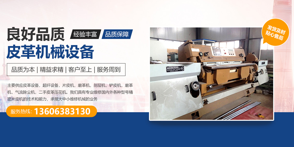 煙臺鼎豫機械設備有限公司位于山東省煙臺市芝罘區楚玉路238號泰和工業園,我公司主要經營皮革機械設備,超纖設備及配件的生產,銷售。我們有好的產品和專業的銷售和技術團隊,主要供應皮革設備,超纖設備,片皮機,磨革機,剖層機,鏟皮機,磨革機,氣流除塵機,二手皮革壓花機。我們具有專業維修國內外各種型號精密片皮機的技術和能力,承攬大中小維修機械的業務。定制各種型號帶刀、砂輪等。
